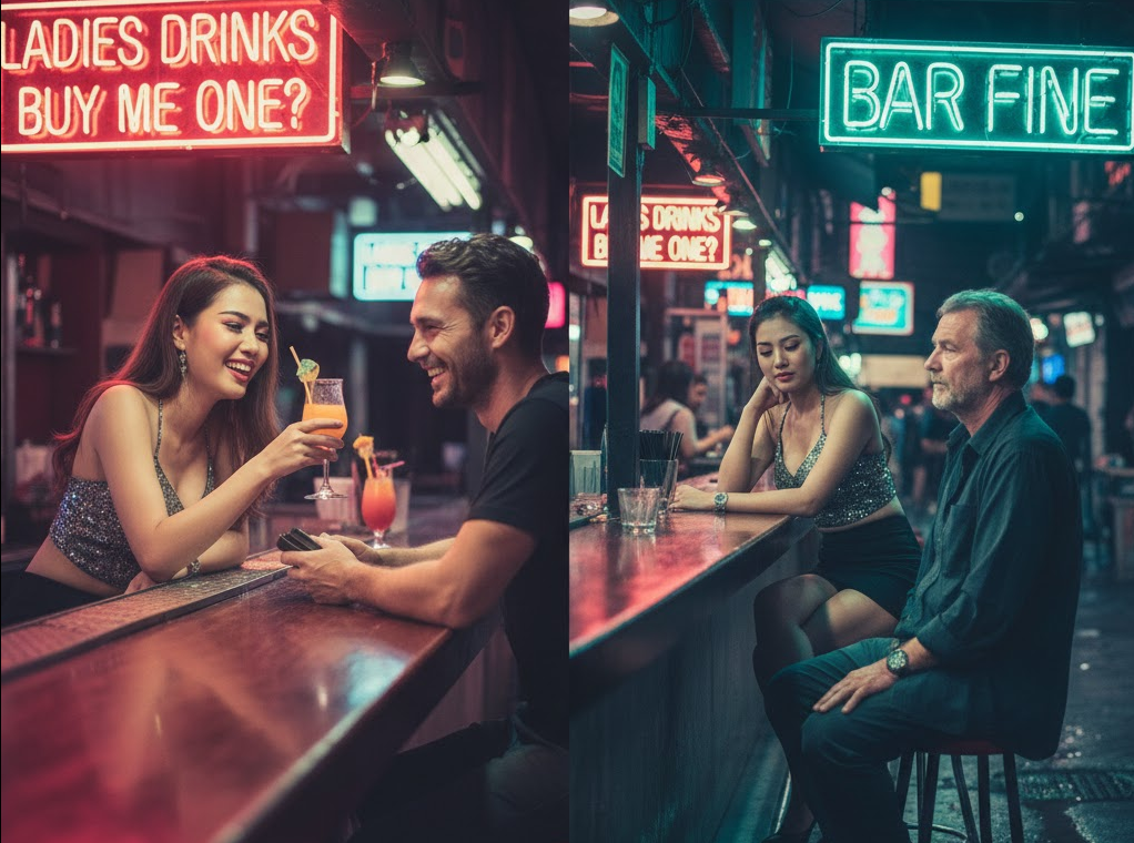 It’s the relentlessness that wears you down. You politely decline one girl, she leaves with a sad face or fake laugh, and before you’ve taken your next sip, another one is sliding onto the barstool next to you. In heavily touristed areas like certain Sukhumvit sois or Walking Street in Pattaya, this cycle continues endlessly. You’re not a person, you’re a walking ATM.