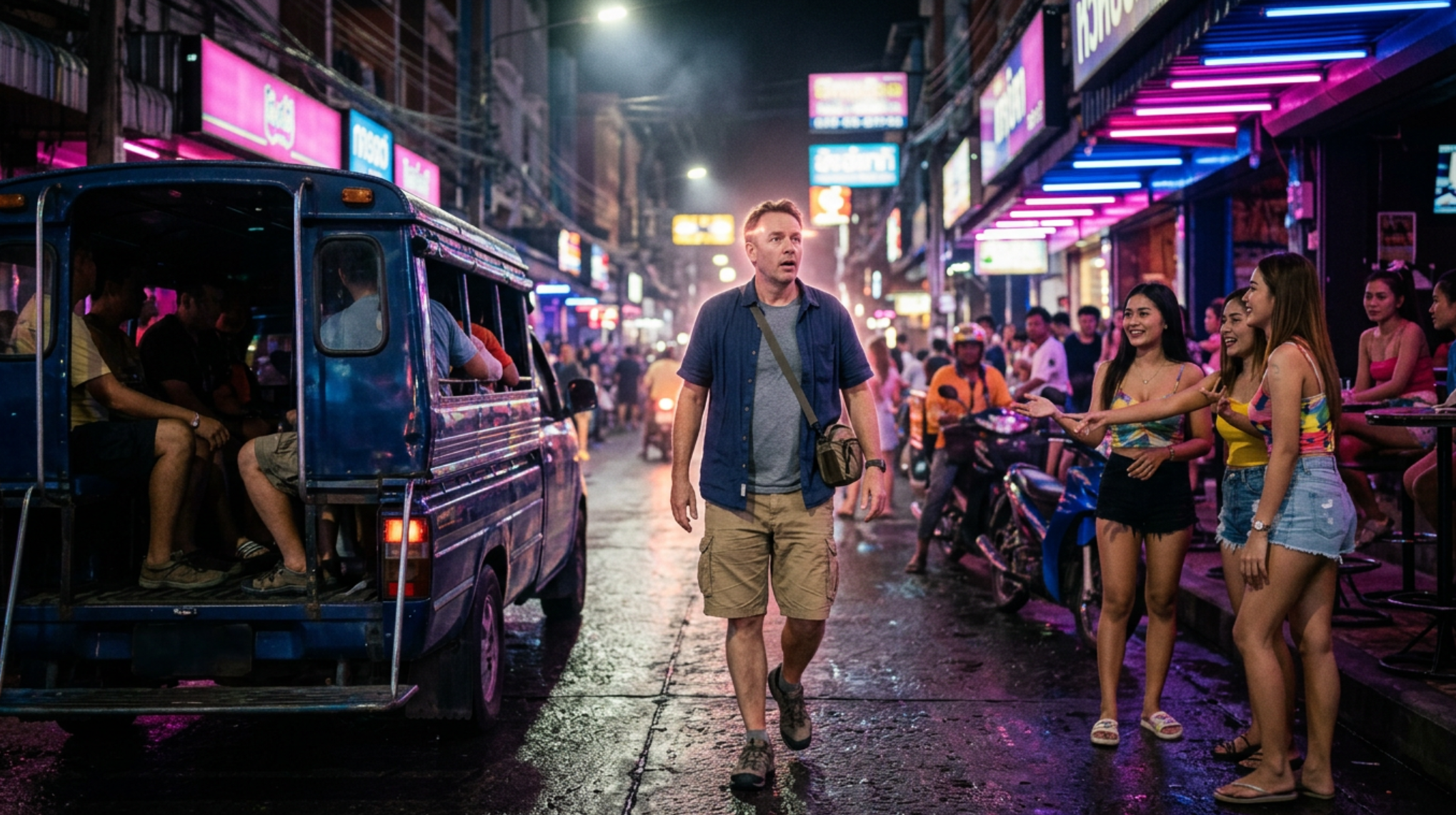 Take a typical first-time visitor. He’s in his 40s or 50s, recently divorced, or just ground down by years of thankless work and a dating life that went nowhere. Back home, he’s invisible. Then he steps off a baht bus onto Soi 6, and within twenty minutes, attractive women are competing for his attention.